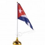 キューバ国旗パターンと旗竿で屋内立っているテーブルフラグ